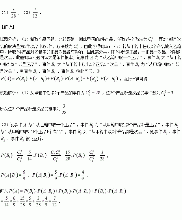 (1)从甲箱中任取2个产品,求这2个产品都是次品的概率;