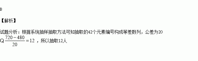 某单位有840名职工,现采用系统抽样方法,抽取42人做问卷调查,将840人按1,2,…,840随机编号,则抽取的42人中,编号落入区间[481,720]的人数为( )
