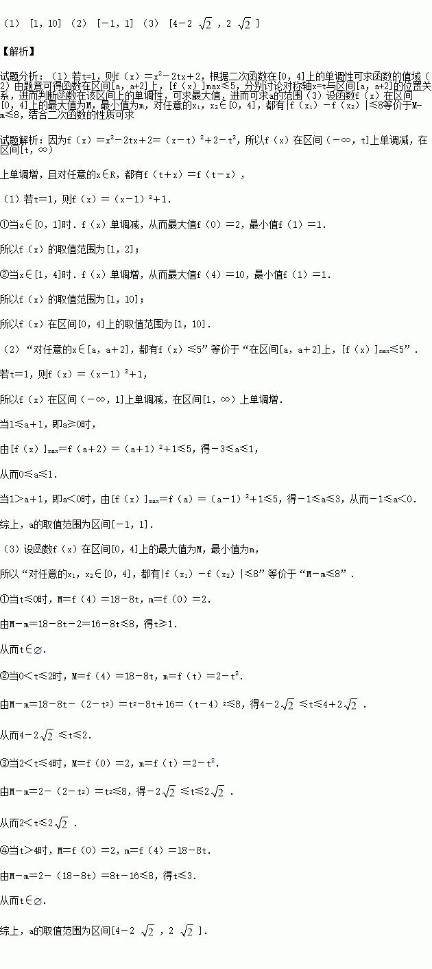 (1)若t=1,求函数f(x)在区间[0,4]上的取值范围;