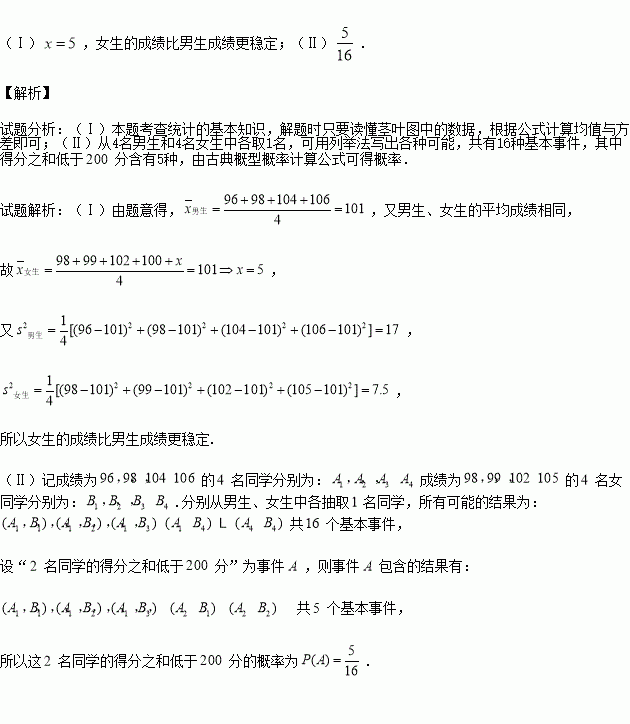 ,已知男生、女生的平均成绩相同