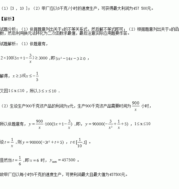 甲厂以x千克/小时的速度匀速生产某种产品(生产条件要求