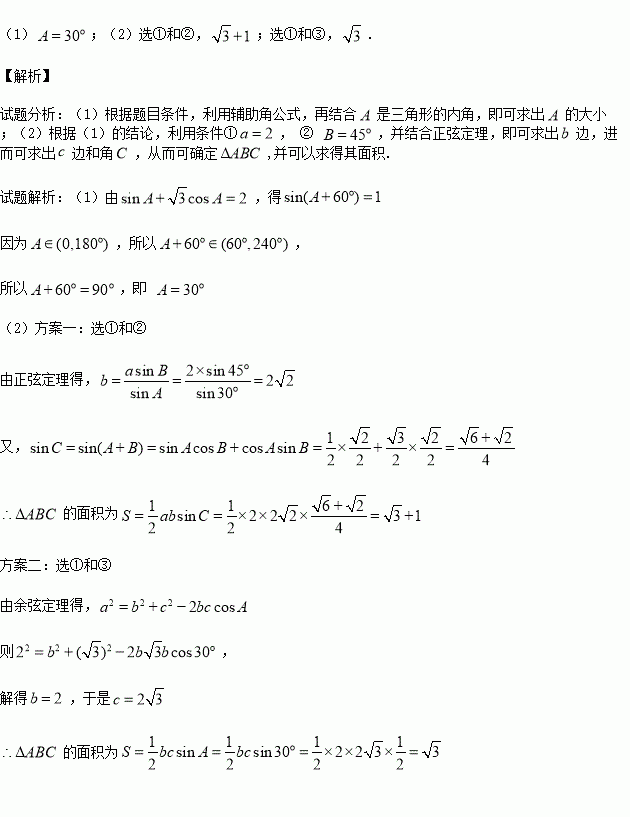 试从中选出两个可以确定△ABC的条件,写出你的选择并以此为依据求△ABC的面积(只需写出一个选定方案即可,选多种方案以第一种方案记分).