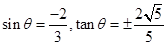 已知角θ的终边上一点P的坐标是(x,–2)(x≠0),且,求sinθ和tanθ的值.(10分)