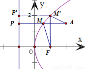 【答案】分析:设点M在抛物线准线上的射影为点P,根据抛物线的定义,将|MA|+|MF|转化成|MA|+|PM|.由平面几何知识,可得当P、A、M三点共线时,|MA|+|PM|有最小值.由此即可得到|MA|+|MF|取最小值,进而得到相应的点M的坐标.