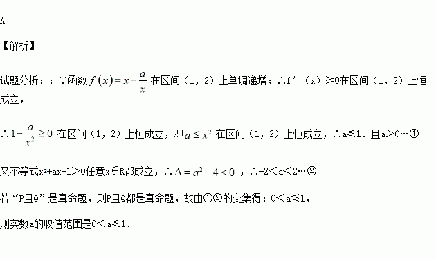 在区间(1,2)上单调递增;命题Q:不等式x2+ax+1>0对任意x∈R都成立.若“P且Q”是真命题,则实数a的取值范围是( )