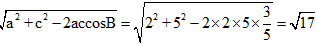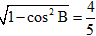 解:(1) ∵cosB=>0,且0<B<∴sinB=由正弦定理得(2) ∵S△ABC=acsinB=4 ∴,∴c=5由余弦定理得b2=a2+c2-2accosB∴b=。