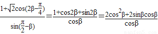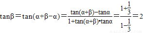 【答案】分析:(I)先进行角的变换,由β=α+β-α,得代入已知,可求出tanβ,再由同角三角函数的关系求出cosβ