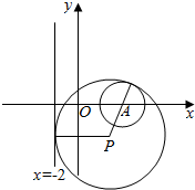 当动圆P与直线x=-2相切,且与定圆A:(x-3)2+y2=1内切时,如图: