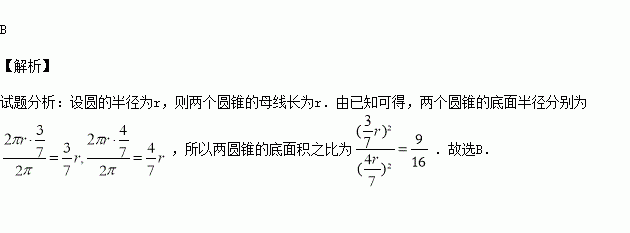 将一圆形纸片沿半径剪开为两个扇形,其圆心角之比为3∶4.再将它们卷成两个圆锥侧面,则两圆锥的底面积之比为( )