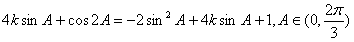 (2)设m=(sinA,cos2A),n=(4k,1)(k>1),且m·n的最大值是5,求k的值。