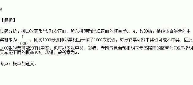 ①掷10次硬币出现4次正面,所以掷硬币出现正面的概率是0.4;