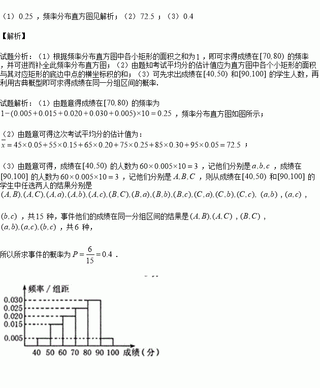 某学校团委组织了“文明出行,爱我中华”的知识竞赛,从参加考试的学生中抽出60名学生,将其成绩(单位:分)整理后,得到如下频率分布直方图(其中分组区间为