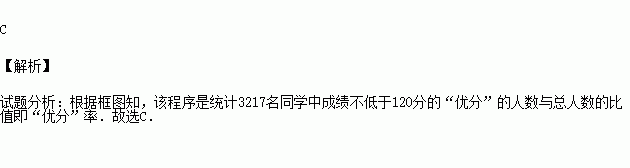 表示,我们将不低于120的考分叫“优分”,将这些数据按右图的程序框图进行信息处理,则输出的数据为这3217名考生的( )