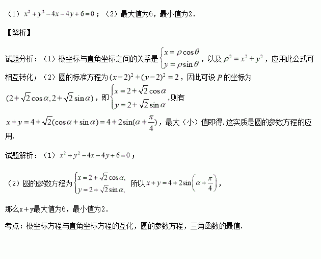 (2)若点P(x,y)在该圆上,求x+y的最大值和最小值.