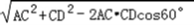 在△ACD中,CD= AC,∠ACD=60°,