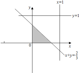 分析 由题意可得总的基本事件为{(x,y)|0≤x≤1,0≤y≤1},事件P包含的基本事件为{(x,y)|0≤x≤1,0≤y≤1,x+y≤$\frac{2}{3}$},数形结合可得.