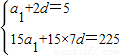 已知等差数列{an}的前n项和为Sn,且a3=5,S15=225.数列{bn}是等比数列,b3=a2+a3,b2b5=128(其中n=1,2,3,…).