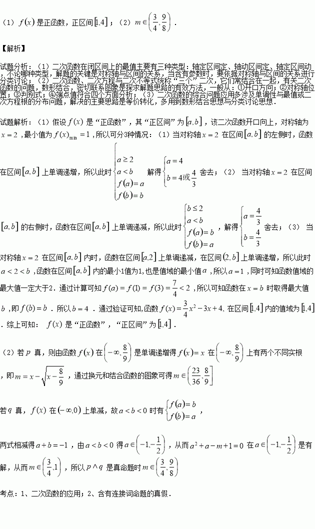 的“正区间”;若不是“正函数”,请说明理由;