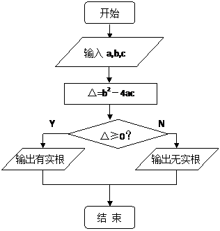 的值。再分成两种情况处理:(1)当△≥0时,一元二次方程有实数根;(2)当△<0时,一元二次方程无实数根。该问题实际上是一个分类讨论问题,根据一元二次方程系数的不同情况,最后结果就不同。因而当给出一个一元二次方程时,必须先确定判别式的值,然后再用判别式的值的取值情况确定方程是否有解。该例仅用顺序结构是办不到的,要对判别式的值进行判断,需要用到条件结构。