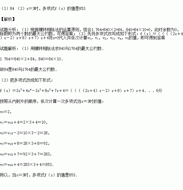 (1)试用辗转相除法求840与1 764的最大公约数.