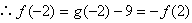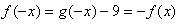 已知f(x)为奇函数,g(x)=f(x)+9,g(-2)=3,求f(2)。