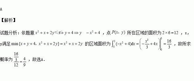 任意取一点P(x,y),则x,y满足min|x+y+4,x2+x+2y|= x2+x+2y的概率为( )