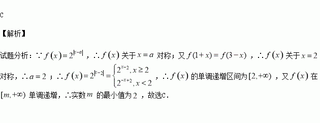 若函数f(x)=2|x﹣a|(a∈R)满足f(1+x)=f(3﹣x),且f(x)在[m,+∞)单调递增,则实数m的最小值为( )
