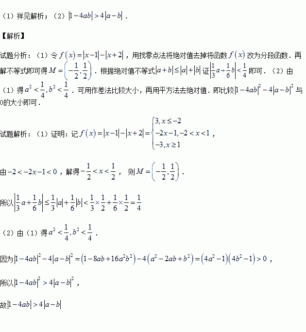 设不等式-2<|x-1|-|x+2|<0的解集为M,a,b∈M.