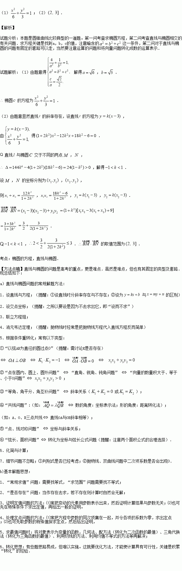 (1)求椭圆的方程