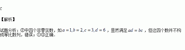 ②四个非零实数a、b、c、d依次成等比数列的充要条件是ad=bc;