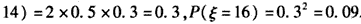 (2)已知每吨该商品的销售利润为2千元,ξ表示该种商品两周销售利润的和(单位:千元),若以上述频率作为概率,且各周的销售量相互独立,求ξ的分布列和数学期望。 |