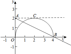 当k<0时,当直线经过点B(4,0)时,直线和半圆有2个交点,此时k=$\frac{2-0}{0-4}$=$-\frac{1}{2}$,