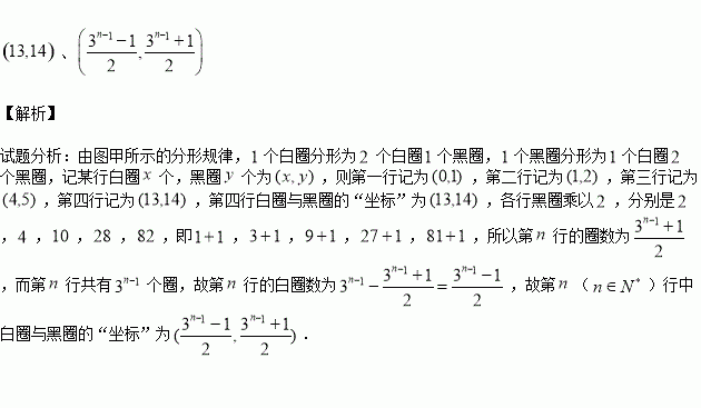我们采用“坐标”来表示图乙各行中的白圈、黑圈的个数(横坐标表示白圈的个数,纵坐标表示黑圈的个数).比如第一行记为