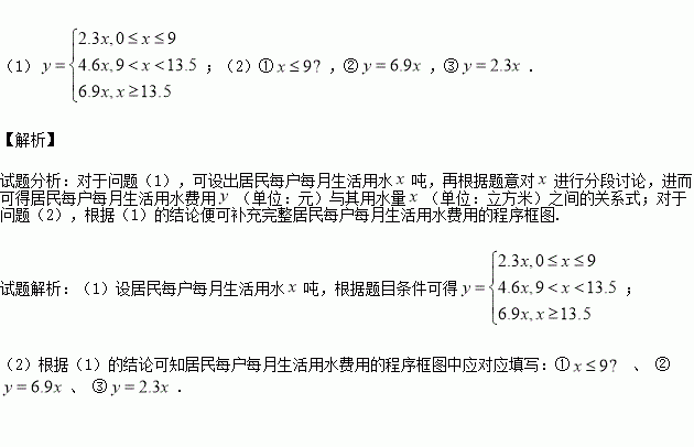 (2)如图是按上述规定计算太原市居民每户每月生活用水费用的程序框图,但步骤没有全部给出,请将其补充完整(将答案写在下列横线上).①______________;②_______________;③______________.