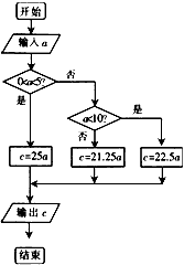 在音乐唱片超市里,每张唱片售价25元,顾客购买5张以上(含5张)唱片,则按九折收费;顾客购买10张以上(含10张)唱片,则按八五折收费。编写程序,根据输入顾客购买唱片的数量a,输出顾客要缴纳的金额c。画出程序框图。