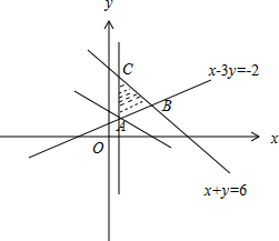 解:由约束条件$\left\{\begin{array}{l}{x+y≤6}\\{x-3y≤-2}\\{x≥1}\end{array}\right.$作出可行域,