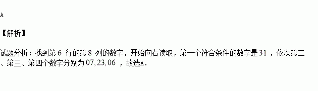 从一个含有40个个体的总体中抽取一个容量为7的样本,将个体依次随机编号为01,02,…,40,从随机数表的第6行第8列开始,依次向右,到最后一列转下一行最左一列开始,直到取足样本,则获取的第4个样本编号为( )