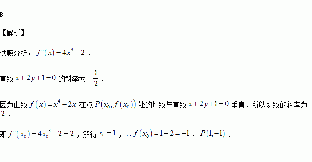 若曲线f(x)=x4-2x在点P处的切线垂直于直线x+2y+1=0,则点P的坐标为( )