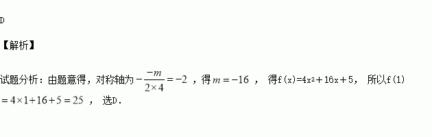 函数f(x)=4x2-mx+5在区间[-2,+∞]上是增函数,在区间(-∞,-2)上是减函数,则