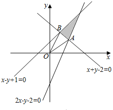 联立$\left\{\begin{array}{l}{2x-y-2=0}\\{x+y-2=0}\end{array}\right.$,解得A($\frac{4}{3},\frac{2}{3}$),