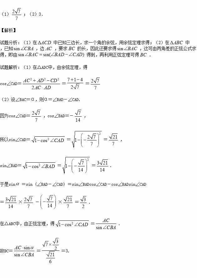 如图所示,在平面四边形ABCD中,AD=1,CD=2,AC=