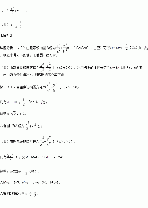 (Ⅱ)过右焦点F做长轴AB的垂线,交椭圆C于M、N两点,若|MN|=3,求椭圆C的离心率.