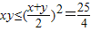【答案】分析:由已知条件,可以得到,从而得出lg(xy)的最大值.