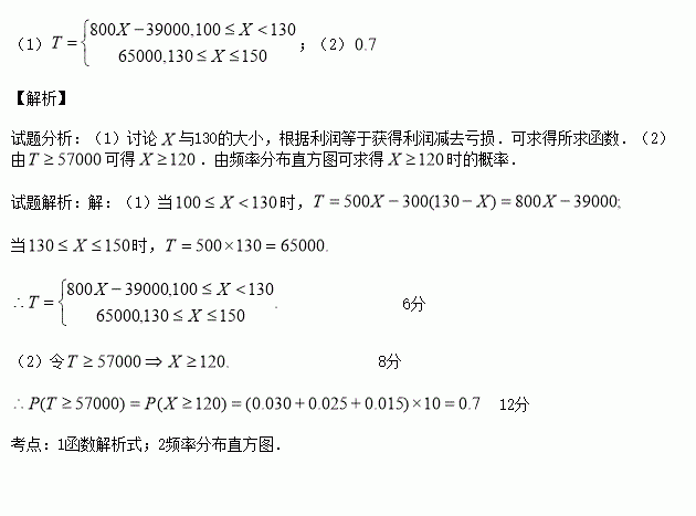 £¨12·Ö£©¾ÏúÉ̾ÏúijÖÖÅ©²úÆ·£¬ÔÚÒ»¸öÏúÊÛ¼¾¶ÈÄÚ£¬Ã¿ÊÛ³ö1t¸Ã²úÆ·¿É»ñµÃÀûÈó500Ôª£¬Î´ÊÛ³öµÄ²úÆ·£¬Ã¿1t¿÷Ëð300Ôª£®¸ù¾ÝÀúÊ·×ÊÁÏ£¬µÃµ½ÏúÊÛ¼¾¶ÈÄÚÊг¡ÐèÇóÁ¿µÄƵÂÊ·Ö²¼Ö±·½Í¼£¬ÈçͼËùʾ£®¾ÏúÉÌΪÏÂÒ»¸öÏúÊÛ¼¾¶È¹º½øÁË130t¸Ã²úÆ·£¬ÒÔ