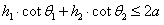 (08年上海卷理)某海域内有一孤岛,岛四周的海平面(视为平面)上有一浅水区(含边界),其边界是长轴长为2a,短轴长为2b的椭圆,已知岛上甲、乙导航灯的海拔高度分别为h1、h2,且两个导航灯在海平面上的投影恰好落在椭圆的两个焦点上,现有船只经过该海域(船只的大小忽略不计),在船上测得甲、乙导航灯的仰角分别为θ1、θ2,那么船只已进入该浅水区的判别条件是 .