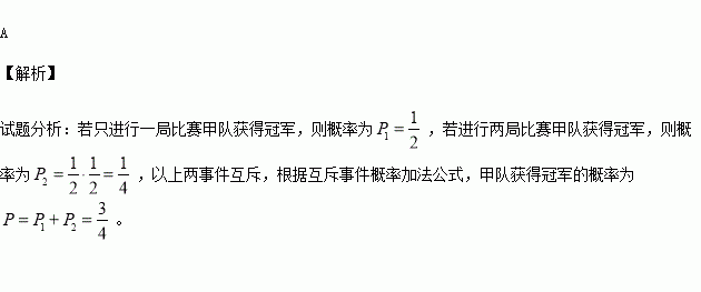 甲、乙两队进行排球决赛,现在的情形是甲队只要再赢一局就获冠军,乙队则需要再赢两局才能得冠军.若两队胜每局的概率相同,则甲队获得冠军的概率为 ( )