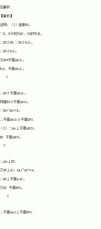 如图,在正方体ABCD—A1B1C1D1中,E、F、G分别是CB、CD、CC1的中点.