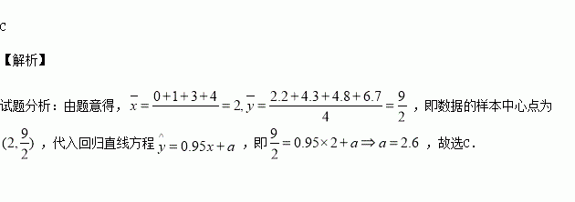 利用散点图观察,与线性相关,其回归方程为,则的值为( )