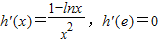当0<x<e时,h'(x)>0,当x>e时,h'(x)<0