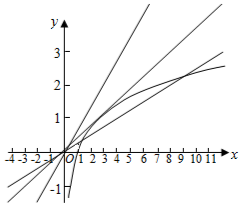 则过原点且与f(x)相切的切线方程为y-lnm=$\frac{1}{m}$(x-m)=$\frac{1}{m}$x-1,